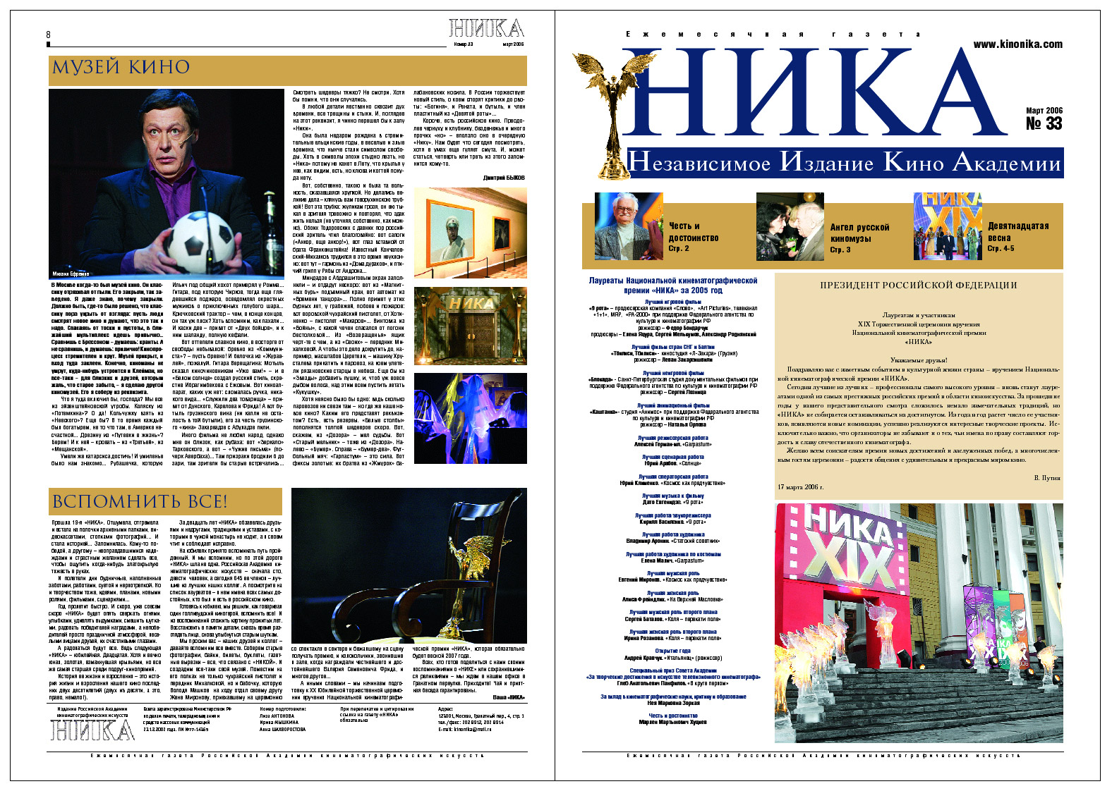 Газета Российской Академии кинематографических исскуств "НИКА".